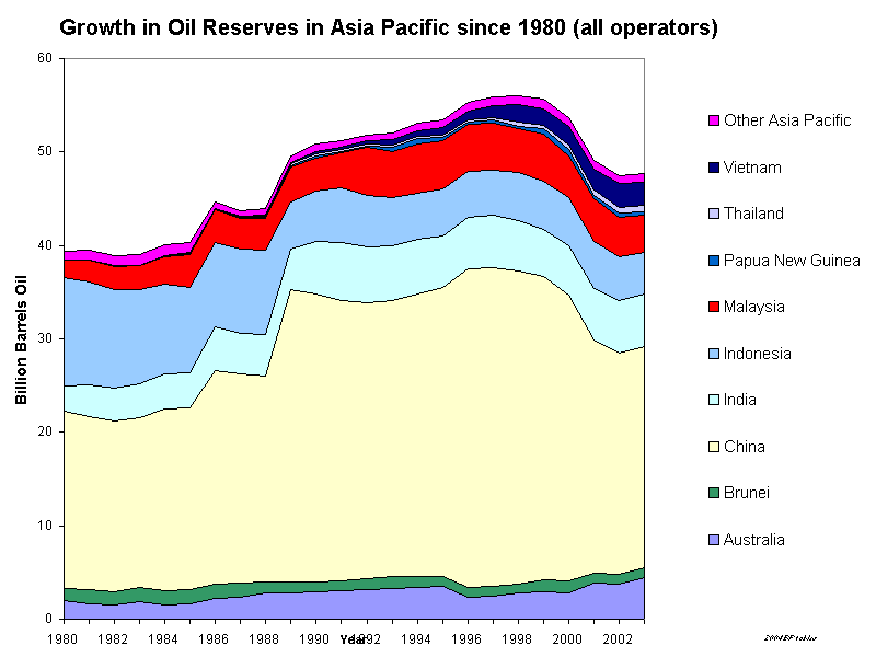 This chart shows the gas consumption in Asia Pacific from 1980 to end 2003...