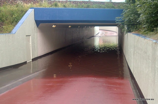 I should make it clear that there have been reports of flooding and the media here plays it up somewhat. However, all they've actually had to report upon was heavy rainfall causing a few cm of water to stay for a few minutes or a couple of hours in obviously difficult places such as underpasses, or occasionally especially vulnerable cellars. Such problems are resolved very quickly. For instance, in one example last year I returned home two hours after my wife to find that her feet had got slightly wet as she cycled through a "flooded" underpass. When I'd cycled along the same route there was not even a puddle. This and related incidents nearby made it into the local press as "flooding".